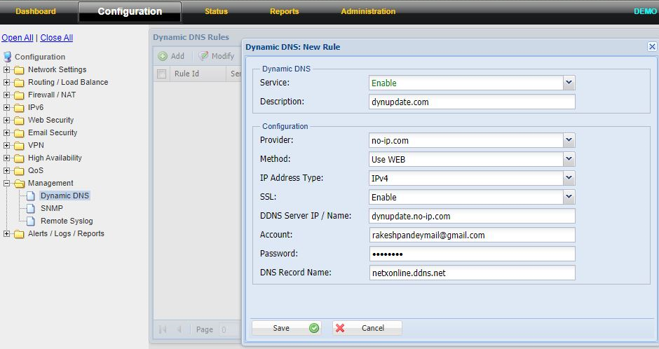 Below steps shall be followed to configure Dynamic DNS in NetXGATE Firewall.